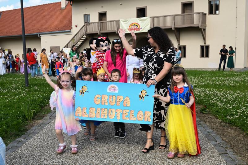Evenimentul a debutat cu o paradă a costumelor, unde fiecare copil a strălucit în ținuta personajului preferat: Cenușăreasa, Elsa, Scufița Roșie, Mica Sirenă, eroi curajoși și zâne fermecate. Defilarea a fost întâmpinată cu aplauze și zâmbete calde din partea părinților, bunicilor și invitaților prezenți.
