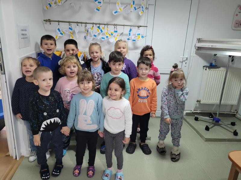 Preșcolarii acestei grupe sunt mereu în mișcare, plini de entuziasm și harnici. Sala de grupă este un loc unde copiii se simt acasă, având la dispoziție un spațiu adecvat vârstei, cu centre de interes dotate, jucării bine alese, din materiale de calitate. Este locul unde și-ar lăsa fiecare părinte copilul știindu-l în siguranță, ocrotit, iubit și educat.