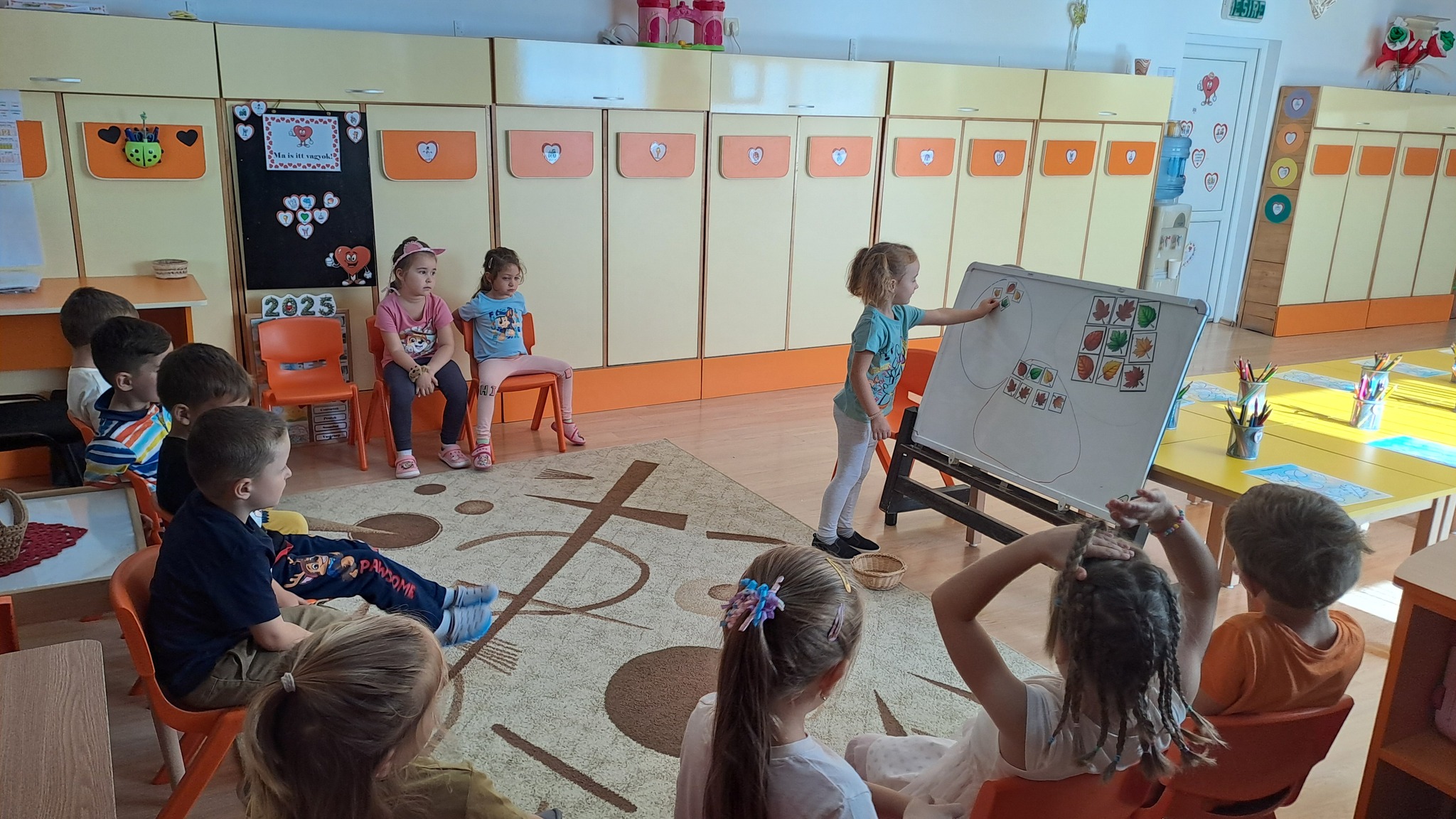 Întrucât amenajarea sălii de grupă are un rol elementar în succesul actului pedagogic, ne mândrim cu un spațiu mare şi luminos, bine dotat şi prietenos, care mereu este decorat în funcție de anotimpul în care ne aflăm, respectiv tema săptămânii.