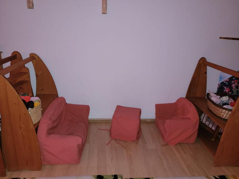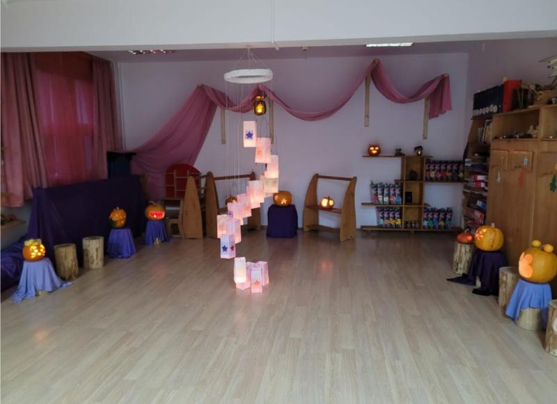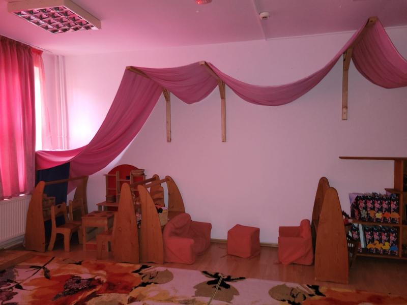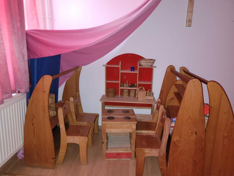 Sala de grupă este special amenajată, cu mobilier cât mai simplu, din lemn, culori pastelate, copilul simțindu-se într-un mediu familial. Ei se pot juca la căsuța păpușii, bucătărie sau pot construi diferite lucruri din cuburi din lemn.